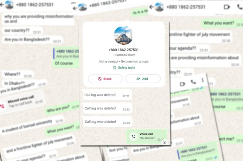 Minutes later, the same caller attempted to reach me via WhatsApp. The profile name was “Rashedul Islam” using the number +8801862-257531. When I did not answer, the caller sent a text: